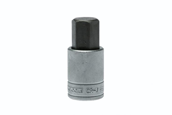 1/2" drive hex S2 socket bit made from chrome vanadium with a satin finish.