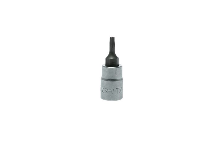 1/4" drive TX S2 socket bit made from chrome vanadium with a satin finish.