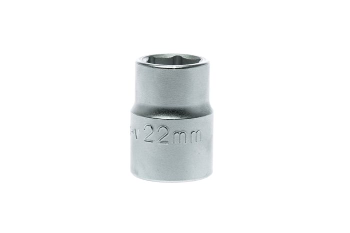 3/4" drive 6 point regular metric socket made from chrome vanadium with a satin finish.