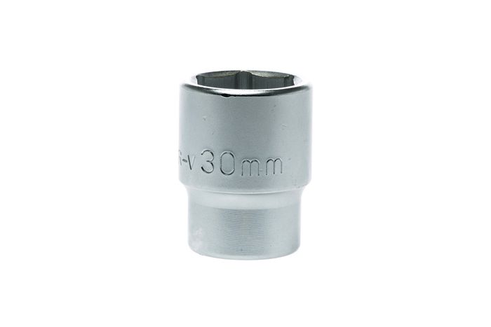 3/4" drive 6 point regular metric socket made from chrome vanadium with a satin finish.