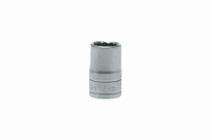 1/2" drive 12 point regular metric socket made from chrome vanadium with a satin finish. DIN 3120/3124/ISO 2727