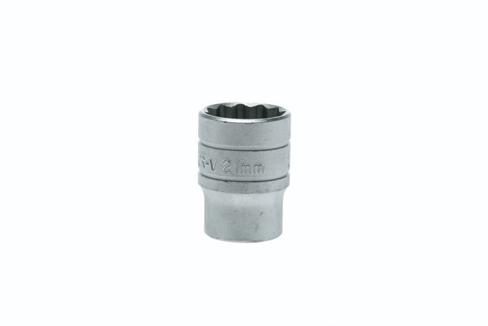 1/2" drive 12 point regular metric socket made from chrome vanadium with a satin finish. DIN 3120/3124/ISO 2727