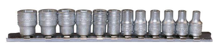 12 piece 1/4" drive 6 point regular sockets supplied on a clip rail. Made from chrome vanadium with a satin finish.