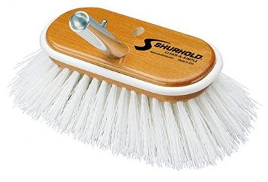 Shurhold's 6' 980 Deck Brush with stiff bristles features a hardwood base, premium bristles, wrap-around safety bumper and the handy Shur-Lok quick-release adapter. The angled head has outward flaring bristles that not only hold large amounts of cleaning solution, but also reach into corners and other tough terrain where dirt lurks as well. white. Polystyrene.