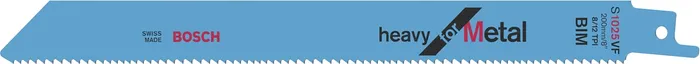 The S 1025 VF Heavy for Metal Reciprocating Saw Blade delivers effortless and smooth cuts in metal. Its thick gauge material (1.25 mm) provides stability for metal demolition. Moreover, its vario-tooth geometry is optimised for easy, comfortable and vibration-reduced cutting. This BIM (bi-metal) blade is designed for cutting regular-strength steel in demolition applications. Its vario-tooth pitch (1.8/2.6 mm) can be used on pipes and profiles with a wall thickness of 2 mm to 10 mm. It is equipped with a standard length of 200 mm, providing a cutting capacity of up to 150 mm. For use with reciprocating saws with 1/2 inch universal shank systems.
