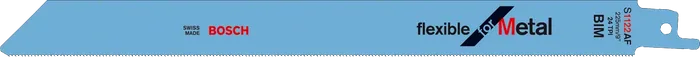 The S 1122 AF Flexible for Metal Reciprocating Saw Blade is optimised for flush cutting in metal. Its 225 mm length and standard-gauge material thickness of 0.9 mm enable excellent flush cuts. Moreover, cutting thin steel materials is effortless and smooth thanks to the blade’s very fine tooth pitch (1 mm) and wavy-set design. Made of BIM (bi-metal), the blade is suitable for regular-strength steel materials, while its very fine tooth pitch is ideal for cutting pipes and profiles with a wall thickness of 0.7 mm to 3 mm. The blade’s standard length of 225 mm provides a cutting capacity of up to 175 mm. For use with reciprocating saws with 1/2 inch universal shank systems.