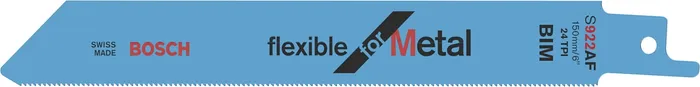 The S 922 AF Flexible for Metal Reciprocating Saw Blade delivers effortless cuts in metal. Its very fine tooth pitch and wavy-set teeth enable smooth cuts in thin material. Moreover, the BIM (bi-metal) blade is engineered for long lifetime when cutting regular-strength steel. It is equipped with a very fine tooth pitch (1 mm) for cutting steel pipes and profiles with a thickness of 0.7 mm to 3 mm. The reciprocating saw blade has a standard length of 150 mm that enables a cutting capacity of up to 100 mm. For use with reciprocating saws with 1/2 inch universal shank systems.
