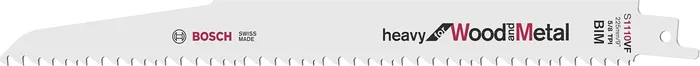 The S 1110 VF Heavy for Wood and Metal Reciprocating Saw Blade delivers fast cuts in wood and metal. Featuring a wide tapered body (22 mm) and extra-thick gauge material (1.6 mm), the blade sustains the ultimate stability needed for demolition applications and enables controlled straight cuts without bending. Its vario-tooth design and large gullets remove material efficiently, supporting fast work progress. Made from BIM (bi-metal), the blade’s fully hardened HSS (high-speed steel) tooth strip is bonded with an elastic HCS (high carbon steel) blade, which makes it ideal for cutting regular-strength steel components embedded in wood. The blade is equipped with a standard length of 225 mm for a cutting capacity of up to 175 mm. For use with reciprocating saws with 1/2 inch universal shank systems.