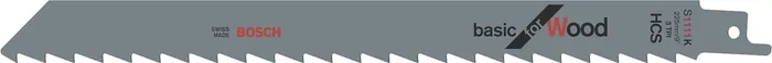 The S 1111 K Basic for Wood Reciprocating Saw Blade makes cuts in wood. Its milled, side-set teeth enable cuts without special requirements. Made of HCS (high carbon steel), the blade is appropriate for cutting firewood, nail-free coarse wood and green wood. It has a standard length of 225 mm that enables a cutting capacity of up to 175 mm. For use with reciprocating saws with 1/2 inch universal shank systems.