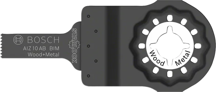 The Starlock AIZ 10 AB blade produces fine cuts in wood and non-hardened metal. It has a narrow 10 mm cutting blade width to allow for filigree work. The blade’s sturdy mounting system reduces wobbling to enable hairline cuts by using direct power transmission. It is intended for filigree adjustment work on non-ferrous profiles and plunge cuts in plasterboard. This blade cuts wood and non-hardened metal, soft plastic and plastic laminate panels. Use this product with all Starlock, Starlock Plus and Starlock Max power tools as well as common multi-tools.