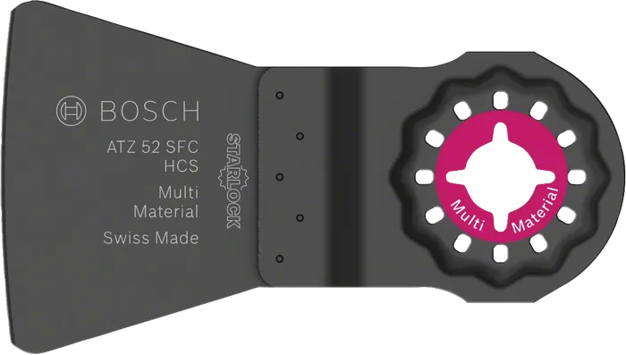 The Starlock ATZ 52 SFC scraper provides reliable removal of soft residues such as carpet adhesive and paint. It features a sharp blade designed for effortless material scraping. Its pliable HCS (high carbon steel) body is elastic and flexible, making it ideal for eliminating gummy residues. This blade removes soft carpet adhesive, paint residue and silicone joints. It is suitable for use with all Starlock, Starlock Plus and Starlock Max power tools as well as common multi-tools.