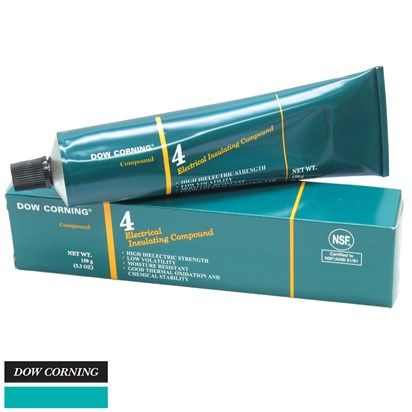 Dow Corning 4 Electrical Insulating Compound, Grease-like material containing an inert silica filler in combination with selected polydimethyl silicone fluids. Silicone-based compound, moderate consistency. Lubricant suitable for electrical connectors and joints.