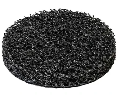 The open-web material runs cool and resists loading, keeping the abrasives actively cutting for consistent results over the life of the product. Our Scotch-Brite Coating Removal Disc provides more surface area than wire brushes. It is also safer as there are no wires to fly loose and the hook and loop backing holds the disc securely in place during use. Our Removal Disc uses silicon carbide abrasive. Silicon carbide is a synthetic mineral that is very sharp and commonly used for low-pressure applications such as paint prep. While it breaks down faster than aluminum oxide, it produces a superior finish.Scotch-Brite industrial abrasives are a unique surface conditioning product with abrasives incorporated into non-woven nylon or other synthetic fibers. Combining abrasives into the fibers creates an abrasive system that delivers consistent results for the life of the product. The open-web material is load resistant and keeps the abrasive minerals cutting at high performance by limiting clogging of the fibers.