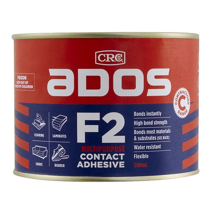 ADOS F2 is a high performance general purpose contact adhesive. It is water resistant and flexible and its high bond strength makes it ideal for a wide range of uses.