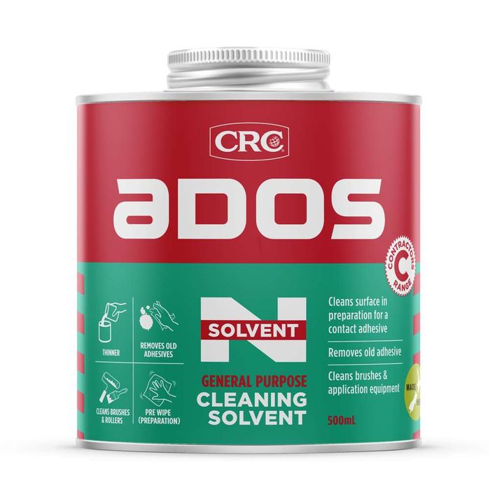 ADOS Solvent N is a good general purpose cleaner used for cleaning equipment, brushes, rollers etc. contaminated with neoprene adhesives. It is used for pre-wiping surfaces prior to applying adhesives and can soften dried flooring adhesives to assist with easier removal. If added to adhesives as a thinner, use only sparingly to reduce viscosity and aid with flow characteristics.