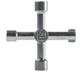 Four position arm tool, offering five differing drive possibilities. This universal cross key is made of alloy with excellent workmanship and durability. Key holes with square, triangle and circle shapes suitable for many especially radiators and electric control cabinet. Compact size, easy to carry and store, an essential tool for maintenance applications.