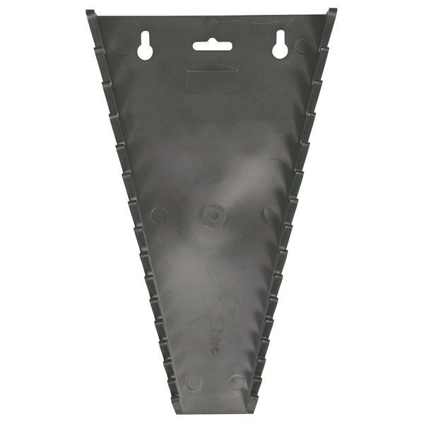 Versatile spanner organiser suitable for offset and open end or combination spanners. Manufactured from high impact plastic with inbuilt eyelet for wall mount. Designed to neatly store open end, ring or combination spanners