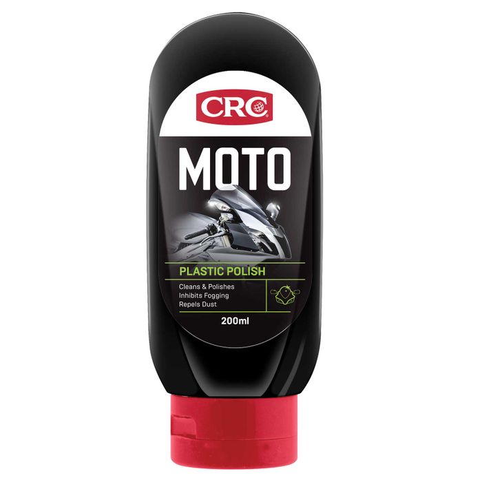 CRC Moto Plastic Polish restores lustre and shine to plastic surfaces while removing discolouration, stains, light scratches, and hazing.