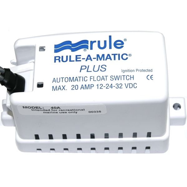 Year after year, the Rule-A-Matic Float Switch has been the of choice for boaters the world over. Sleek and rugged, the Rule-A-Matic Plus float switch has a strong, fully integrated, impact resistant cover, which protects against debris and jamming. 14 gauge highly abrasive resistant marine grade wire, and a built-in test feature. Designed for pumps drawing up to 20 Amps.