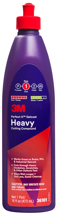 Our 3M Perfect-It Gelcoat Heavy Cutting Compound restores the lustrous beauty of boats by eliminating oxidation, scratches, scuff marks and other surface blemishes from gelcoat. Our fastest-cutting product for gelcoat, this compound removes P800 and finer scratches and leaves a high gloss finish ideal for cutting polish and wax.