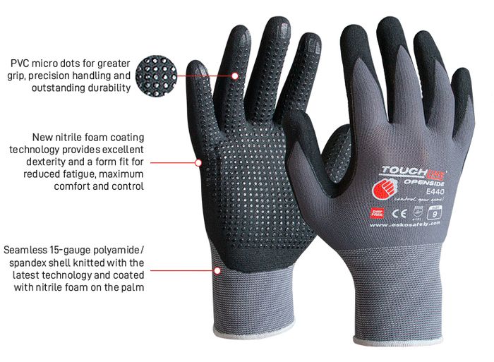- New nitrile foam coating technology provides excellent dexterity and a form fit for reduced fatigue, maximum comfort and control