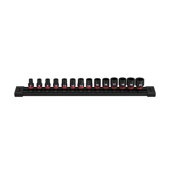 MILWAUKEE SHOCKWAVE 14PC 6P IMPACT SOCKET RAIL 3/8DR 7-21MM