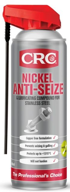 CRC Nickel Anti-Seize and Lubricating Compound is a nickel-based formulation for all metals, especially stainless steel. It is free of copper, lead, sulphides and chlorides. This premium high temperature lubricant protects metal-to-metal applications from seizing and galling caused by high temperatures, heavy loads, vibration, chemicals and corrosion. It is safe for use with most chemicals that are unstable with copper. Nickel Anti-Seize has extremely high temperature capabilities and excellent chemical resistance.