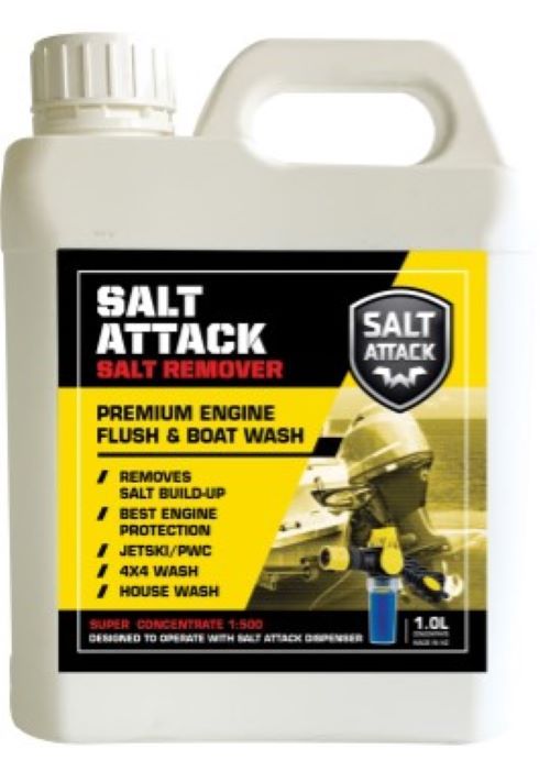 Engine flushing is simple when using the proven Salt-attack mixer, once the motor has been brought up to temperature (if hot flushing), flush salt attack through the engine for 30 seconds to 1 minute. Then shut the motor off, leaving the Salt Attack formula inside the cooling system allowing it to break down any accumulated salt.