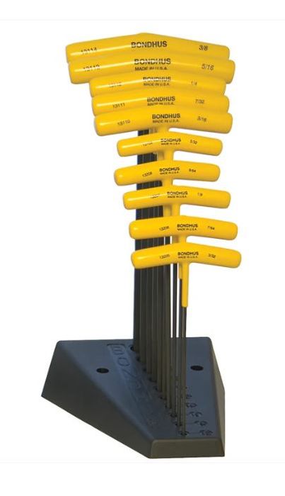 - BONDHUS 10PC T-HANDLE SET 3/32 - 3/8 - WITH PL MTG STAND