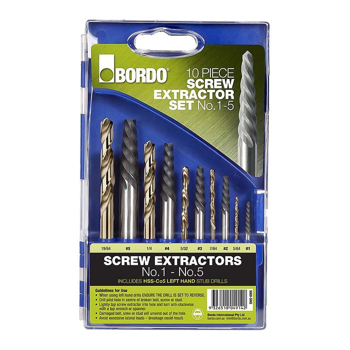 - BORDO 10PC SCREW EXTRACTOR + LH DRILL SET