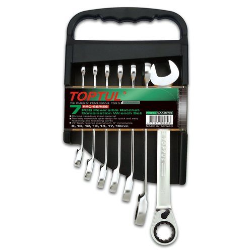 Toptul GAAM0709 Pro-Series Reversible Ratchet Combination Wrench Set Storage Rack 7pcs